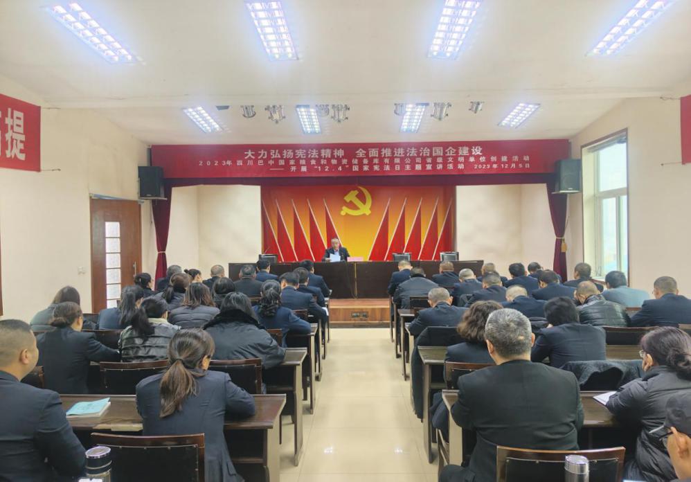 12月5日,四川巴中國家糧食和物資儲備庫有限公司黨總支組織開展“12.4”國家憲法日主題宣講活動。全體黨員、干部、職工參加。